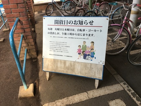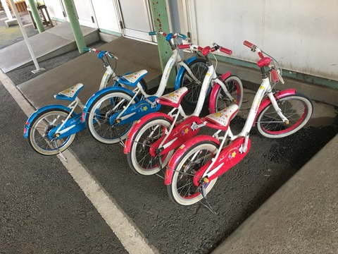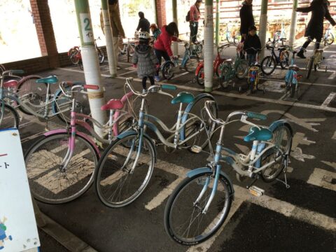 色も大きさも車輪付きもあり、無料貸し出しの施設の中ではかなりしっかりした自転車が多いです。