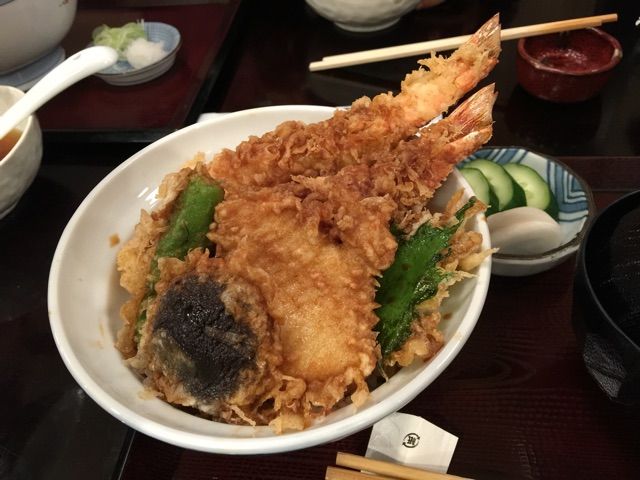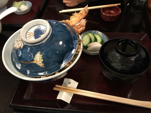 鴨南蛮を食べようと企んでいた奥さんが頼んだ天丼。