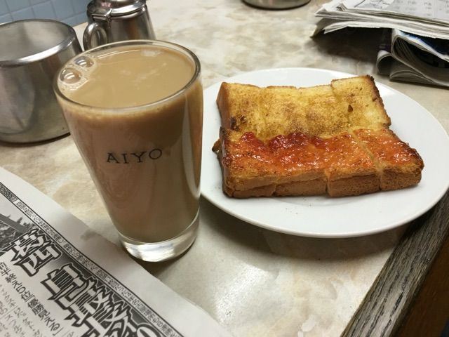 市場でトースト、ミルクコーヒー@愛養(築地場内市場)