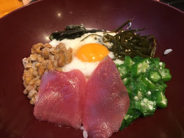 結局マグロだけはつまみに平らげてから、かきまぜて食べたんですが…。