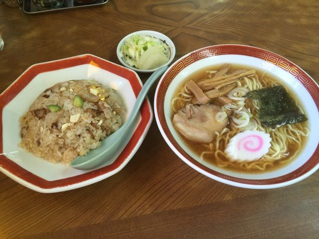 ラーメン+半チャーハンである。
