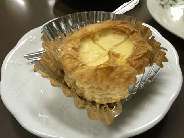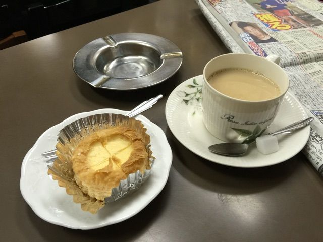 市場でアップルチーズケーキ、ミルクコーヒー@センリ軒(築地場内市場)