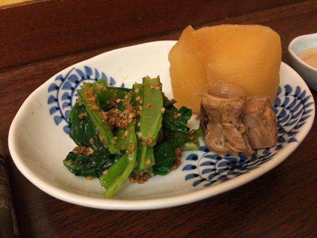 市場で金目煮付け、野菜煮@かとう(築地場内市場)
