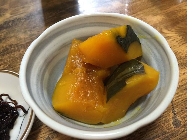 子供にかぼちゃの煮物。
