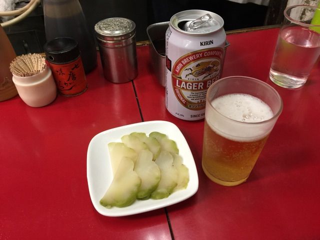そんな忙しい方々の間に席をいただき、ビールにザーサイ。