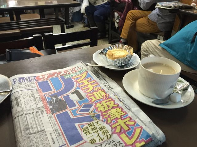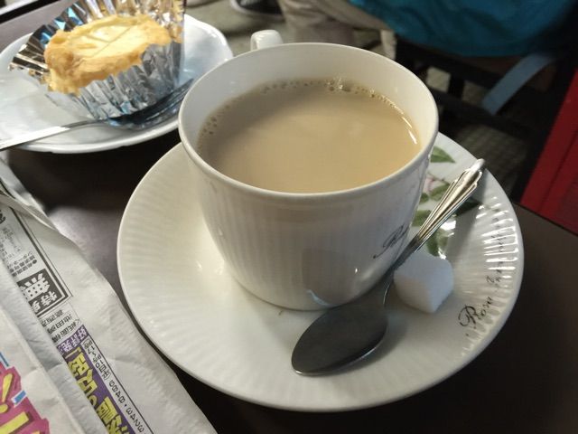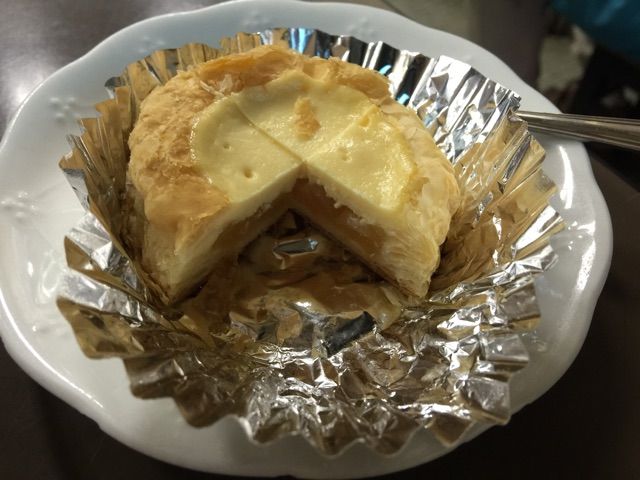 市場でアップルチーズケーキ、ミルクコーヒー@センリ軒(築地場内市場)
