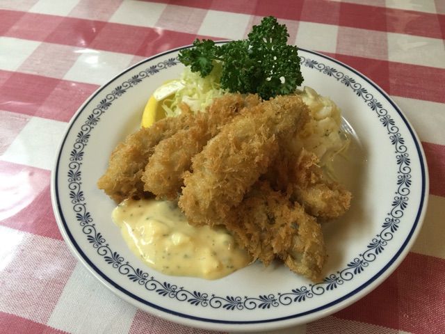 そして洋食屋でこの時期はずせないのがカキフライ。店員さんの話だとこちらのお店ポークカツレツ発祥の店として有名であり、揚げ物には定評があるそうだ。市場でよくカキフライをいただきますが、こちらのカキフライは繊細な感じで、これはこれで確かにうまい。タルタルソースのゆで卵も、ポテトサラダのポテトも少し口当たりを残しているのがまたいいんですよね。