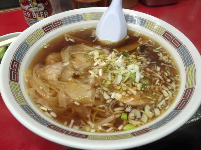 つるっとした感触のいいワンタンもビールを進ませます。