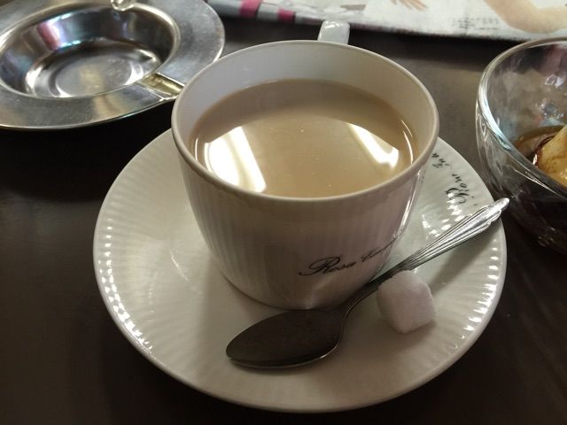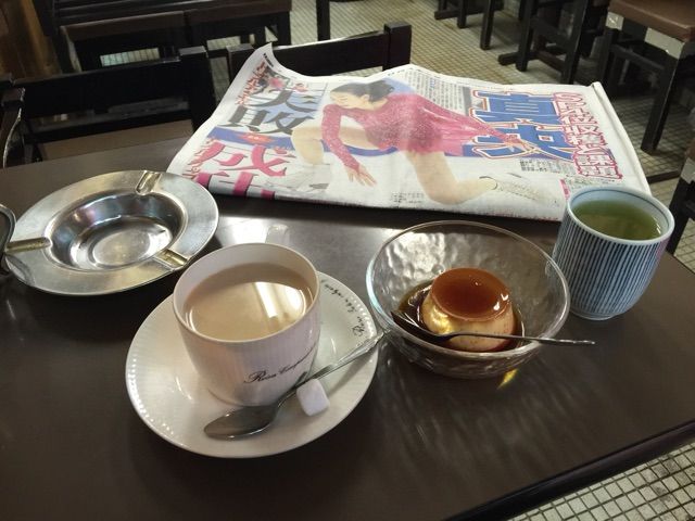 ミルクコーヒーにプリンにお茶まで出てきて、朝から大名遊びです。
