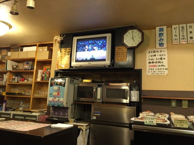 カウンターのみですが、椅子も少々あり、壁に面したカウンターで座れば、そこらの居酒屋と何も変わりはありません。