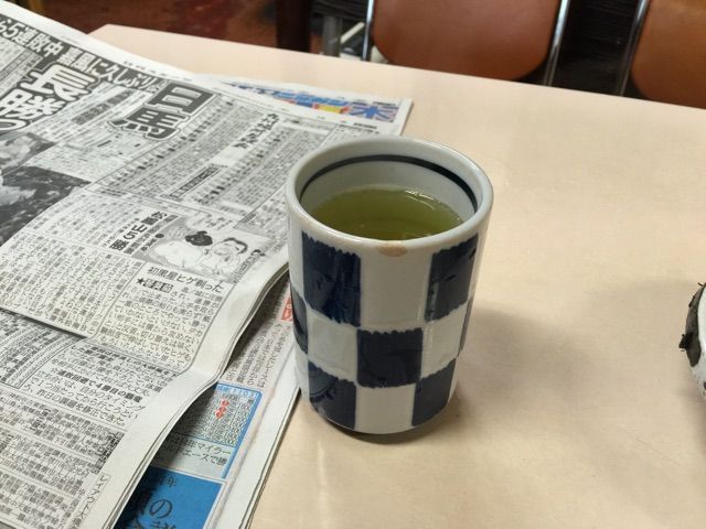 飯を食い終わってスポーツ新聞など眺めているとお茶が出されます。