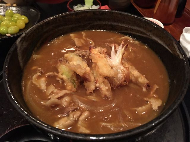 市場でたぬき豆腐、天ぷら、カレー南蛮、鴨南蛮@長生庵(築地場外市場)