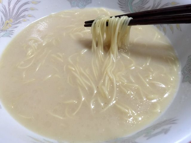 もともと正麺が販売される前から生めんに近いと評判になった藤原製麺の麺が豚骨スープに非常に合う。