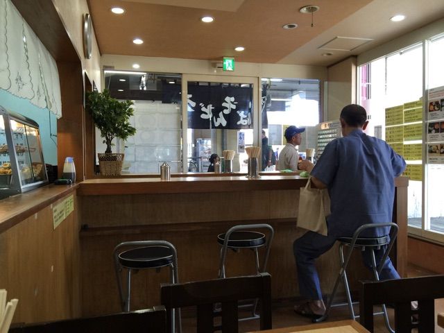 コの字のカウンターは入ってすぐが立ち食いで、奥のカウンターには椅子があります。