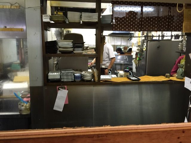厨房がつながっているというか、一つというか、お蕎麦屋さんのお客さんが見えます。