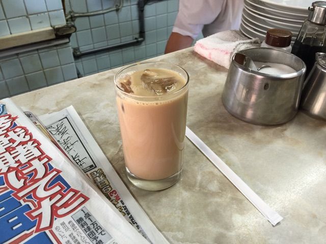 市場でアイスミルクコーヒー@愛養(築地場内市場)