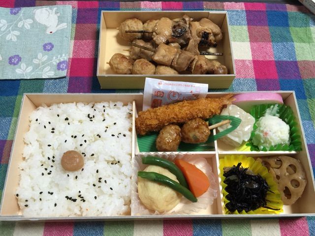 椅子席ではちょっとせわしないので、相撲弁当と焼き鳥を持ち帰り、家で録画した相撲中継を見ることにしました。