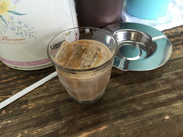 アイスミルクコーヒーに灰皿が出てきて準備完了。