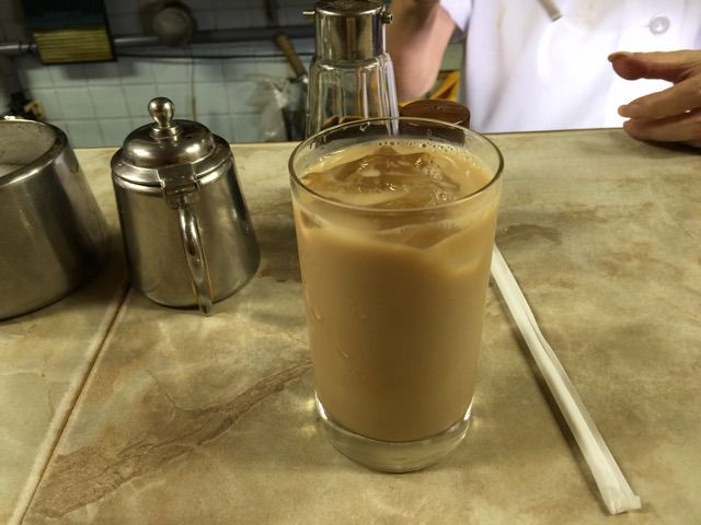 よっしーさん、あーちゃんさんとカウンターに並びアイスミルクコーヒー。