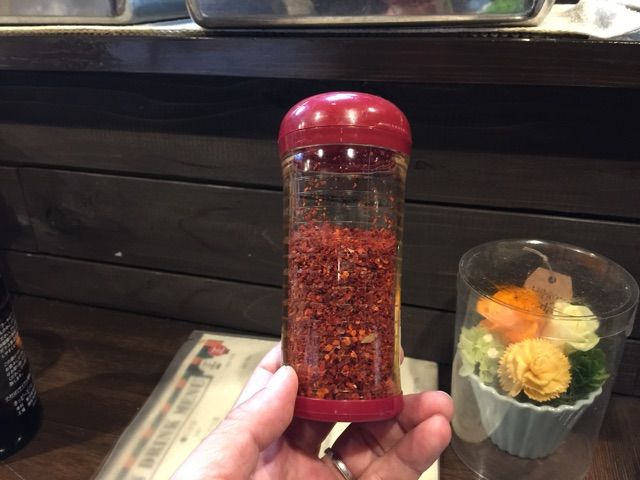 そしてこちらの唐辛子をこれでもかっ!っと振り掛けていただくのがこの店のスタイル。