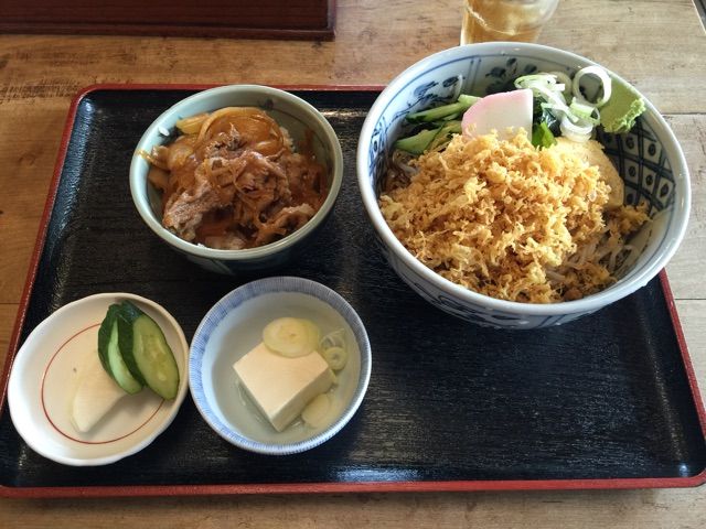 本日は冷やしタヌキのミニ牛丼セット。