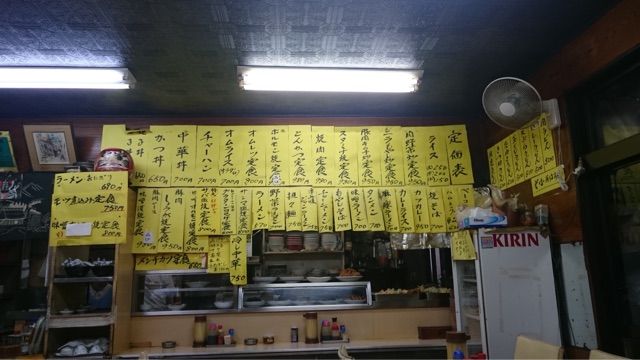 メニューは厨房上に張り出された短冊のみ。