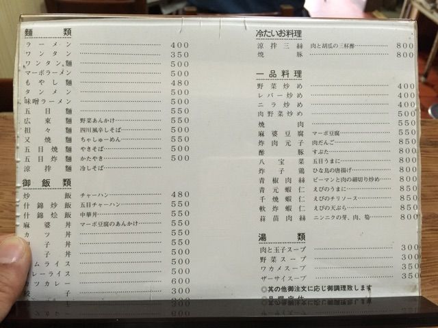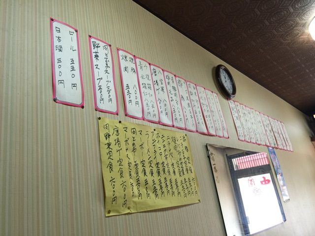 昔の中華屋さんのメニューは漢字で書かれていることが多いですね。