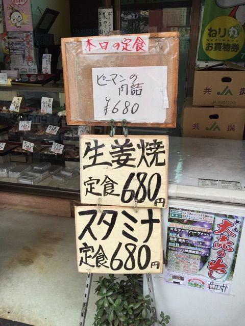 右を見ると定食の看板がかかっています。