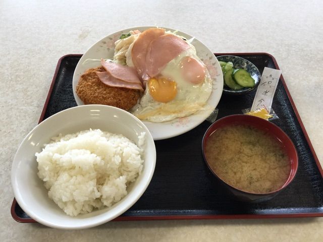 ハムエッグとメンチカツにしてみました。