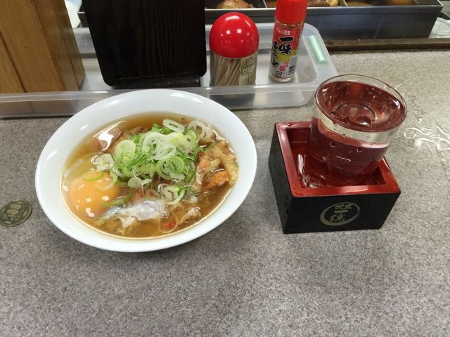 かき揚げにそばつゆをかけ、ネギくらい散らしたものなのだが、その天つまに私は卵を落としてもらう。