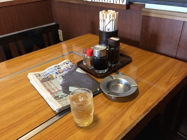 スポーツ新聞に灰皿。チェーン店でこんなことはまずありえませんね!