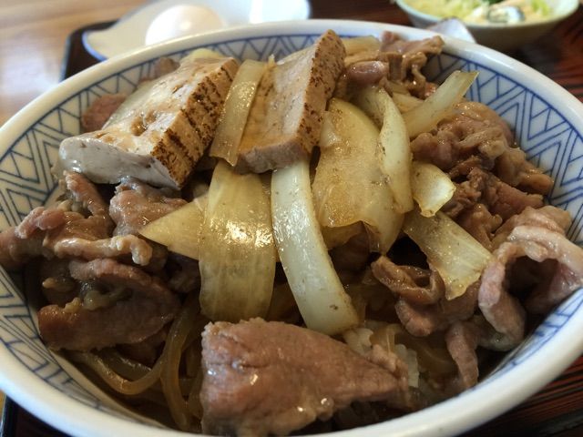 関東のノスタルジック食堂の牛丼は糸こんにゃくが入っていることが多いですね。