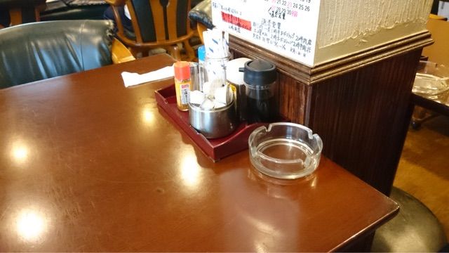 テーブルの上には基本調味料に灰皿。喫茶店らしく雑誌、新聞も充実しております。