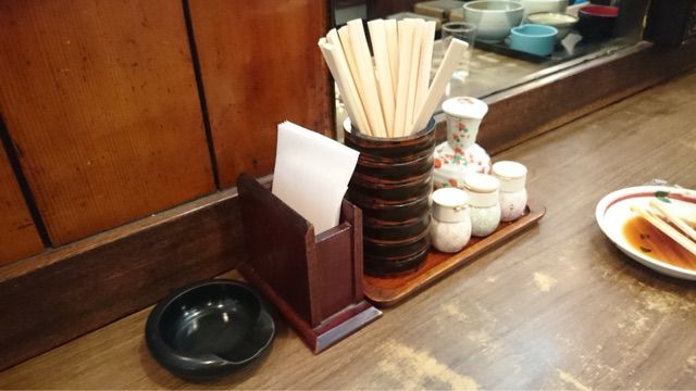 カウンターには醤油、山椒、一味に七味。ナプキンがあるのもお店のホスピタリティーを感じます。