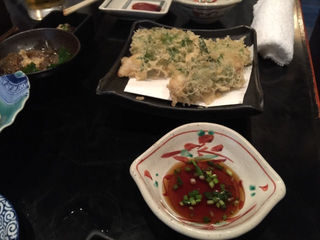 市場でキスの昆布締め、イサキ大葉天、鱧天@長生庵(築地場外市場)