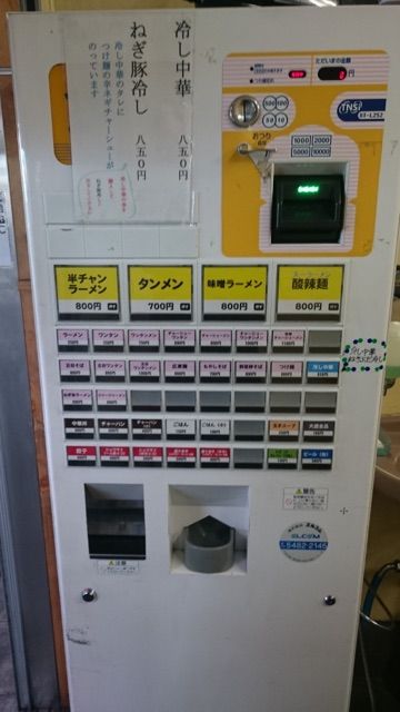 食券制の店はとりあえず右上ってのが、その店のベーシックらしいとの噂ですが、こちらの食券機の右上は酸辣湯ですね。そそられます。