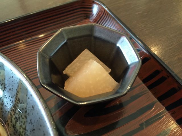 濃い目でみりんの甘さが利いた汁に、限りなく細い蕎麦はしっかり水でしめられていて、美味しいお蕎麦である。