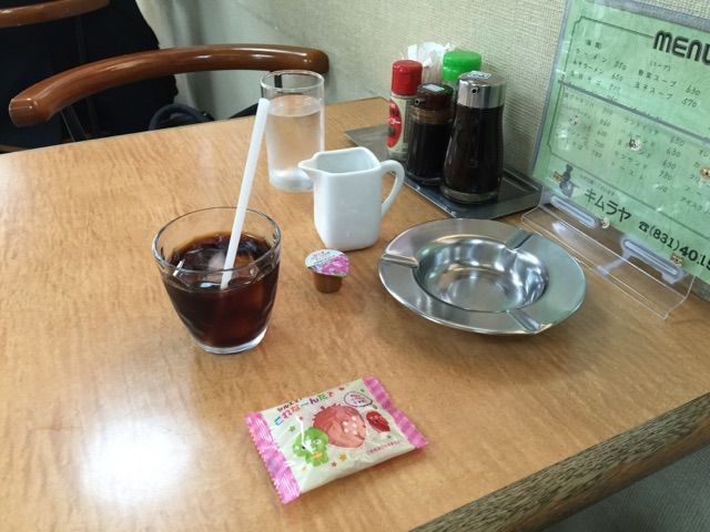 ちょこっとですが、アイスコーヒーとお菓子が付き、灰皿まで出していただいた。