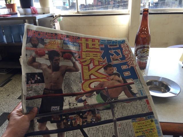 朝酒のお供のスポーツ新聞に灰皿…。