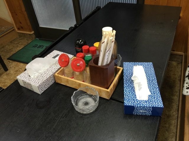 テーブルの上には基本調味料がたくさん、そして灰皿。