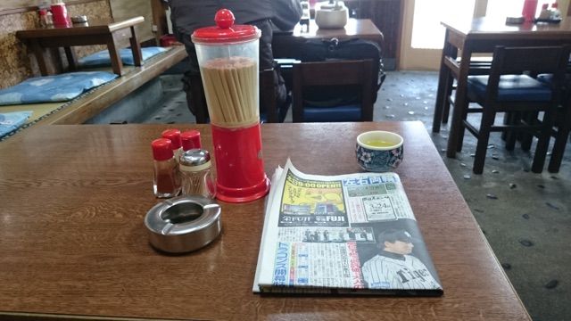 やはりこの手の食堂には灰皿とスポーツ新聞はなくてはならないと思う。