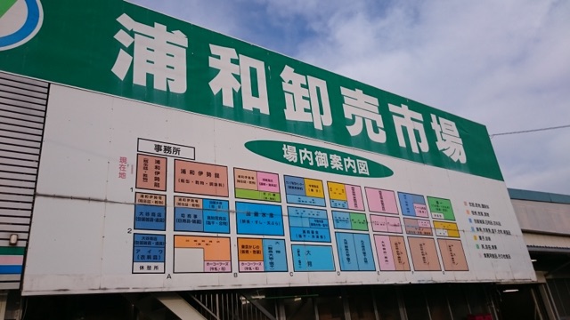 国道17号から埼玉県中央市場に入り、ずんずん進むと浦和卸売市場の看板が見えます。