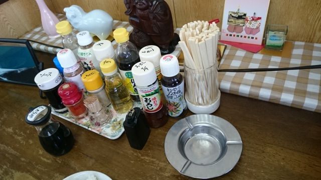 相変わらずたっくさんの調味料に灰皿&ライター。