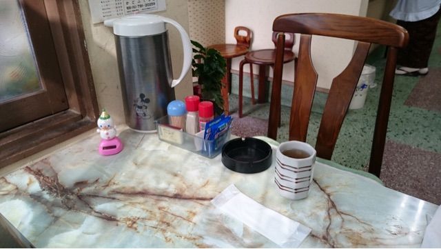 テーブルの上にはポットに基本調味料、ふりかけまであるサービスっぷり。