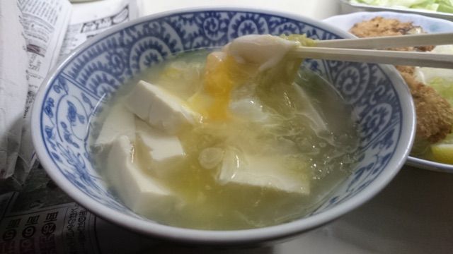 豆腐を細かく切っているのも、卵に絡め食べるのも、そしておぼろこんぶを載せるのもお気に入りのスタイルです。