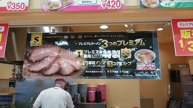 プレミアムラーメンの具材は一般のものと異なるので、厨房を見て一安心し注文。