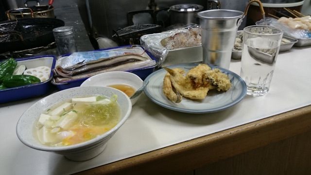 市場で湯豆腐、天ぷら@食堂かつや(柳橋中央市場、愛知県名古屋市中村区名駅)