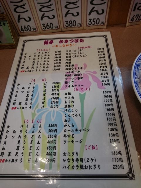 立ち食いそばの基本メニュー。当然きしめんもあります。