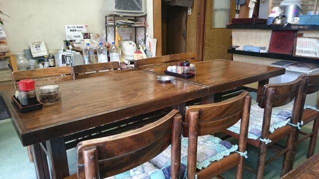 テーブルのみ、小上りは地元の物や、この店で作ったものを並べて売っている。