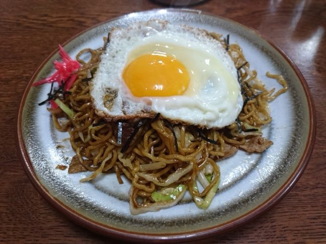 しっかり焼かれた焼きそばにとろっとろの目玉焼き。